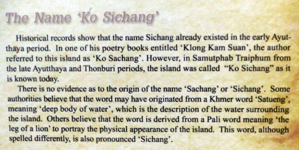 Le nom de Sichang ( สีชัง ) est mentionné depuis la période du royaume d'Ayutthaya (14ème siècle).