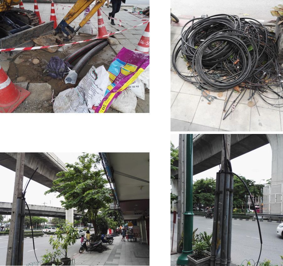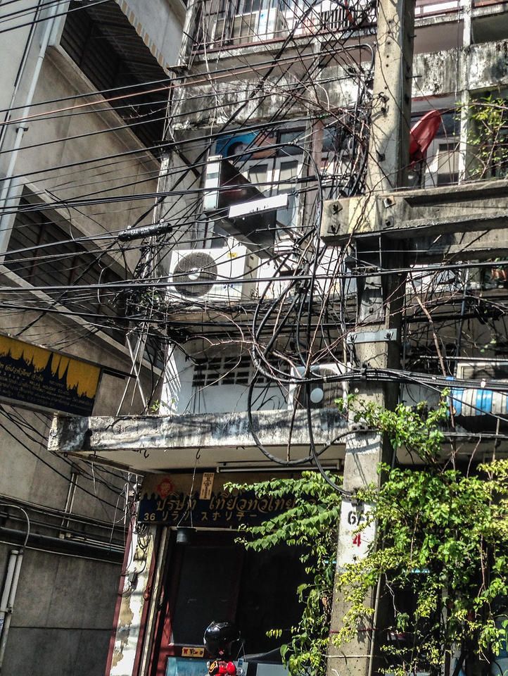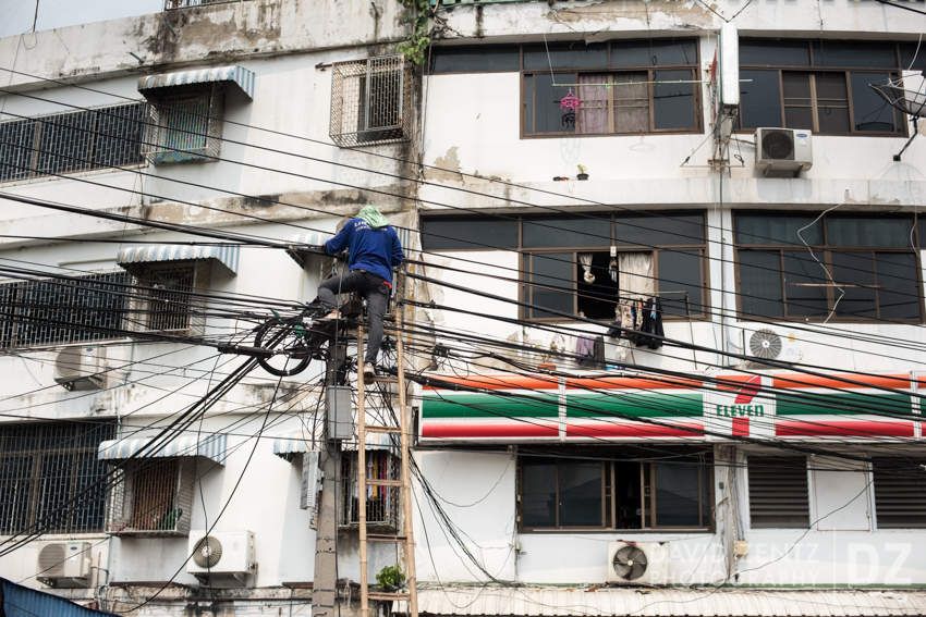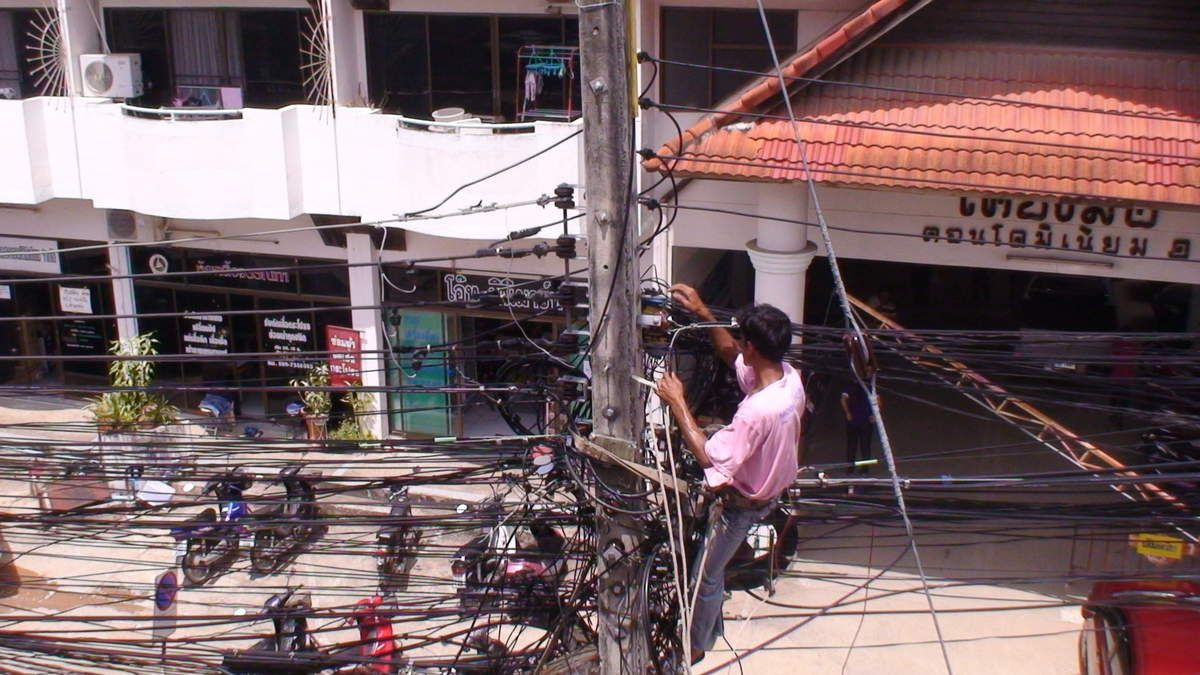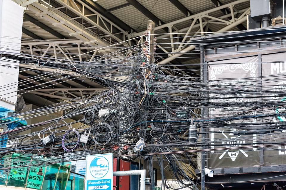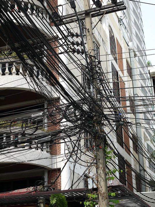 Dans toutes les villes de Thaïlande, les poteaux et les câbles électriques font partie du paysage urbain. Ils sont omniprésents, envahissants certains trottoirs, parfois dans une anarchie incompréhensible !