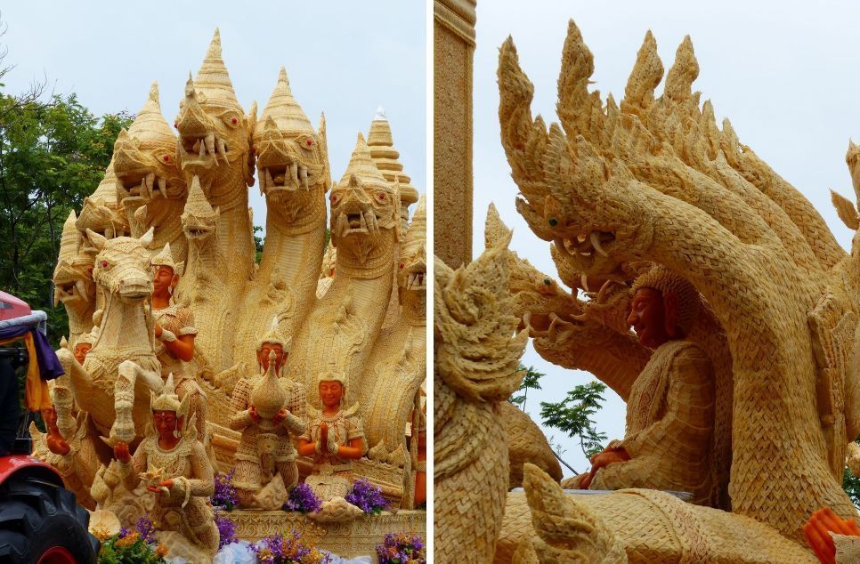 Les chars sont confectionnés dans les temples de la ville et/ou dans les districts alentours dans toute la province. Pour la plupart, ils portent une sorte de plaque en cire sculptée pour indiquer leur provenance.