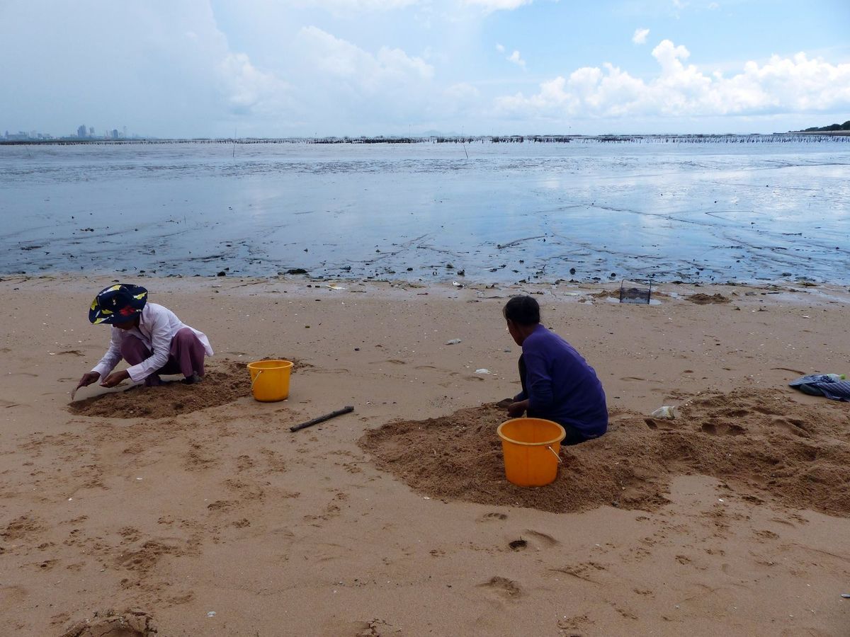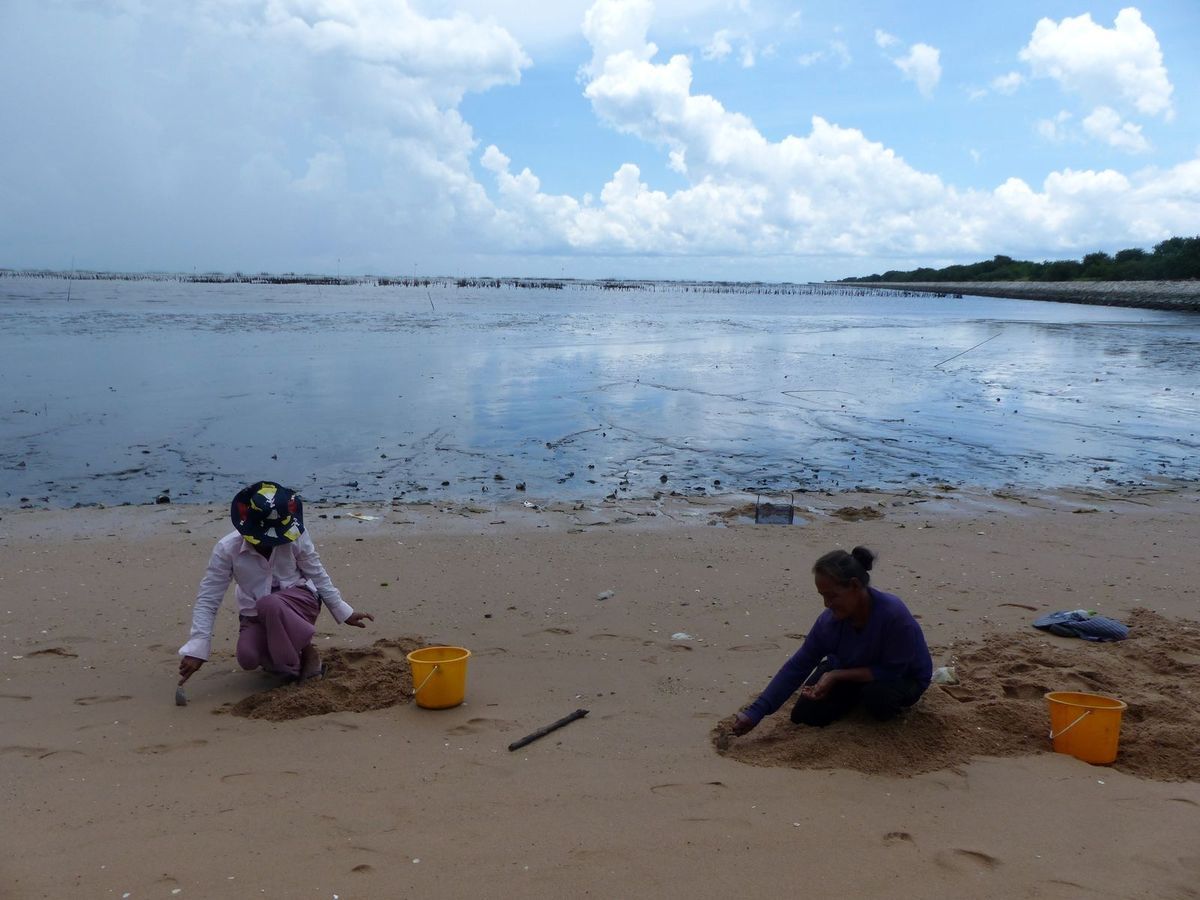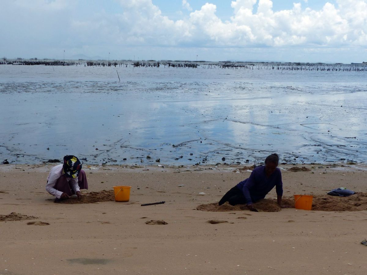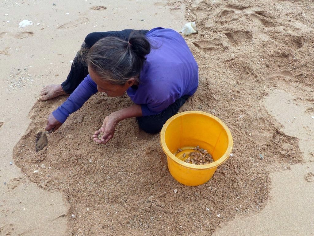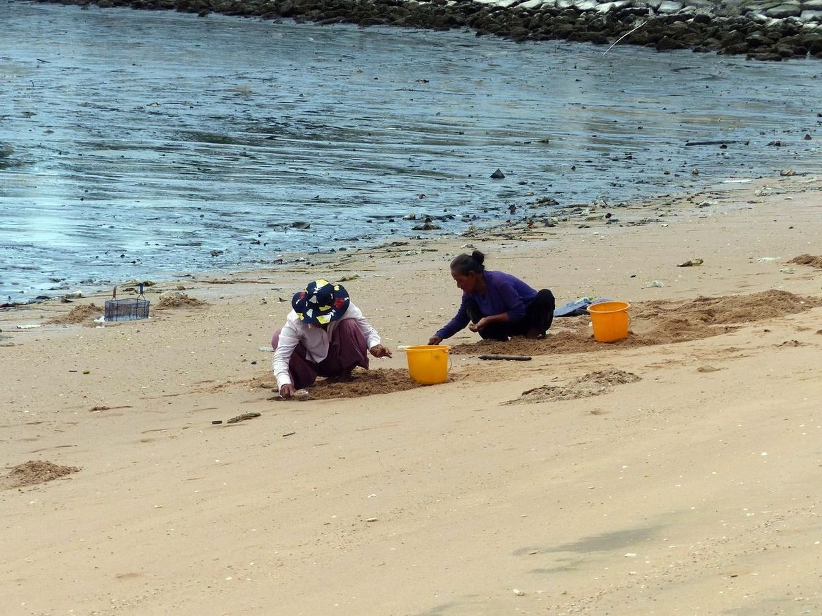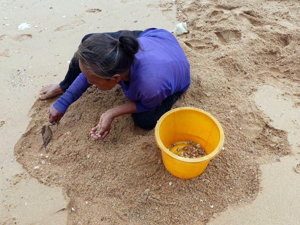 Mais un jour, nous sommes tombés sur deux "mamies" qui grattaient le sable à la recherche de tout petits coquillages.