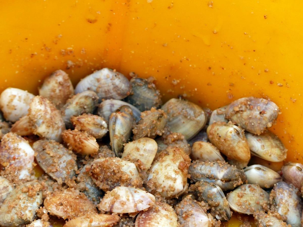 Ce terme "générique" désigne en fait plusieurs sortes de coquillages qui peuvent être de tailles très différentes (tellines, clams, palourdes)
