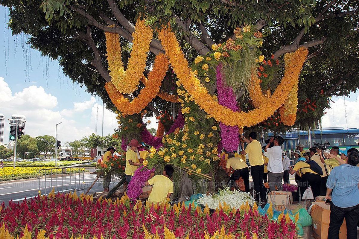 - Les décorations florales sont déployées sur les principales artères autour du Palais Royal.