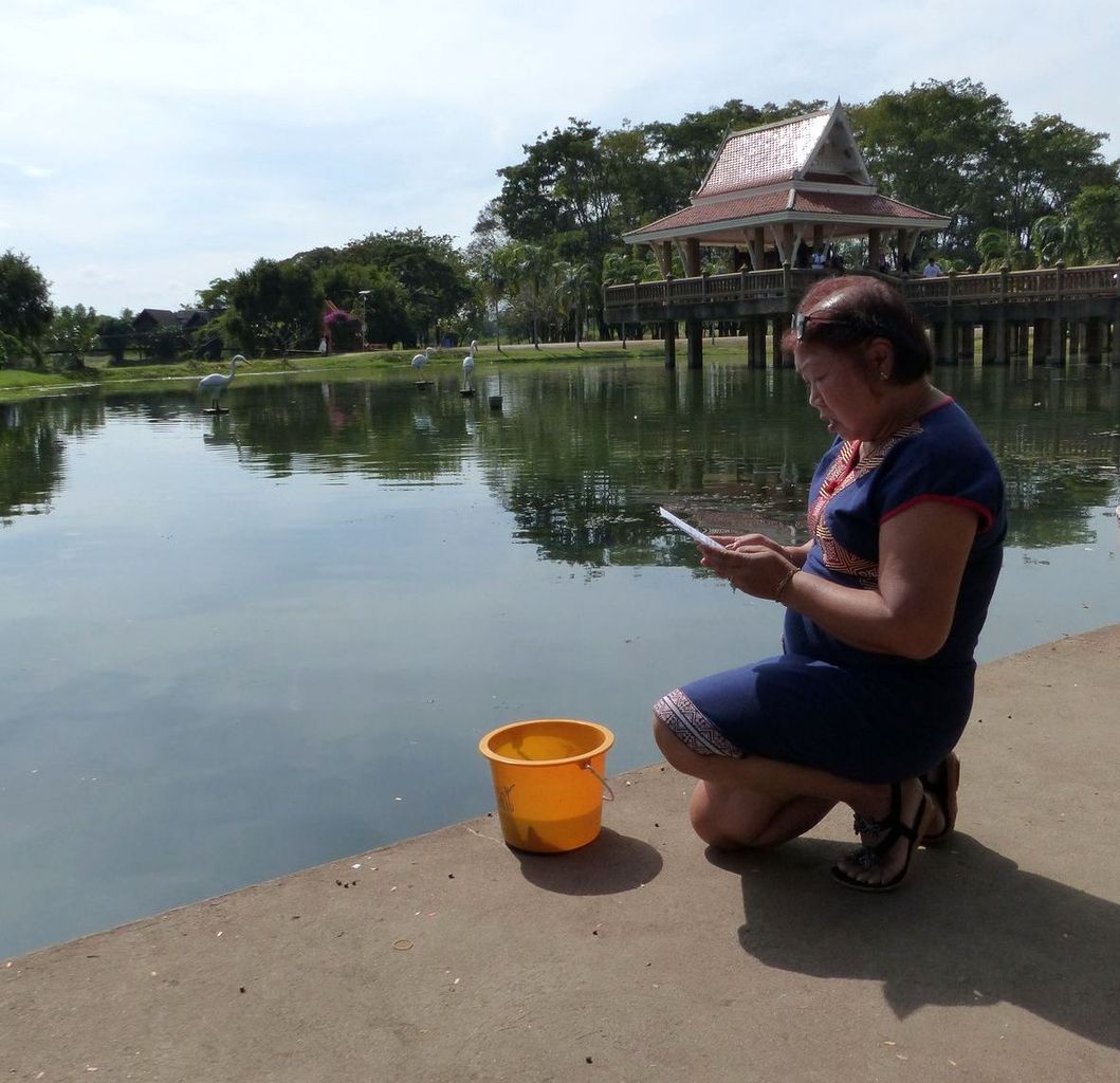 En l'occurrence, lors de notre voyage en Isan, nous nous sommes livrés à ce rituel, au bord d'un lac dans un grand jardin public près de Phimaï, petite ville dont je vous reparlerai.