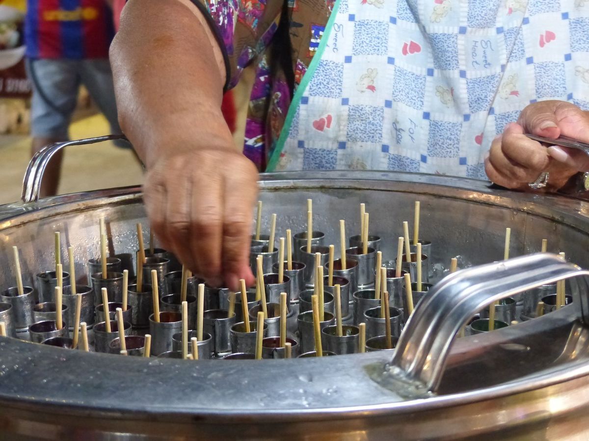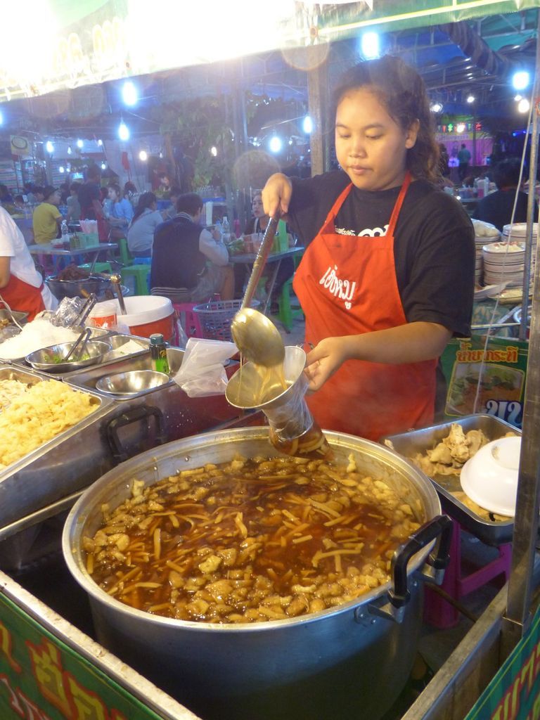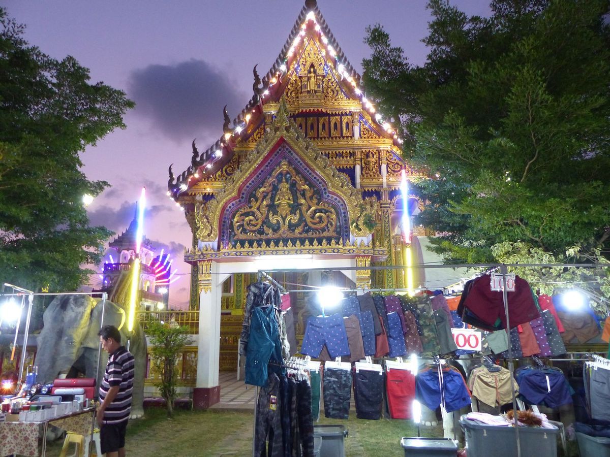 Et bien sur, comme toujours en Thaïlande, il y a les vendeurs de nourriture (fruits, gâteaux, glaces, brochettes, fritures, etc...) et les restaurants en plein air...