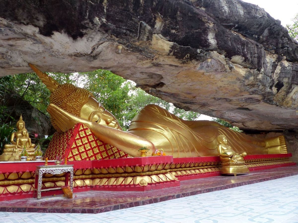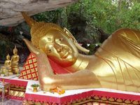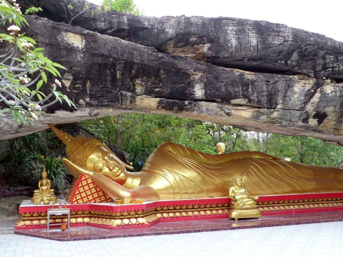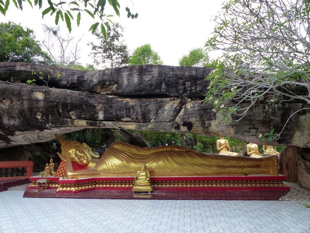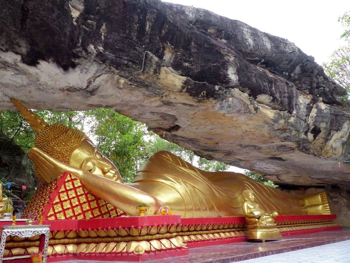 est principalement connu pour une statue de bouddha couché, placée sous une arche de pierre.