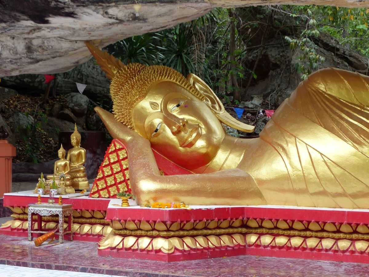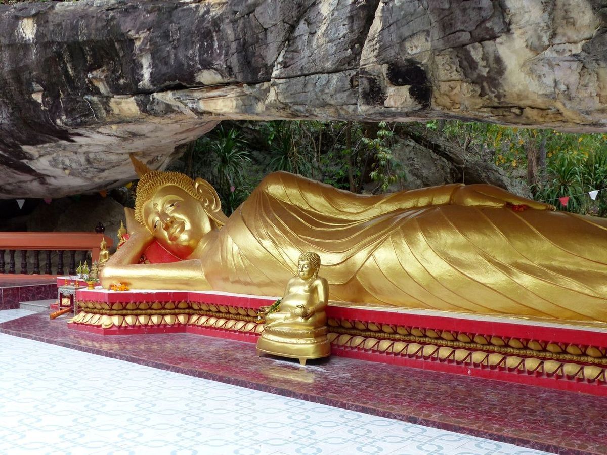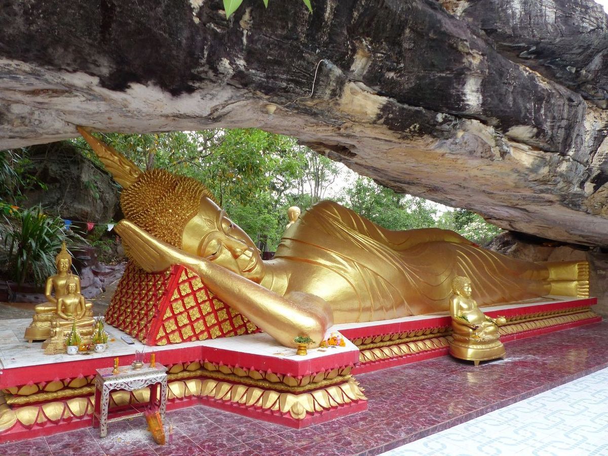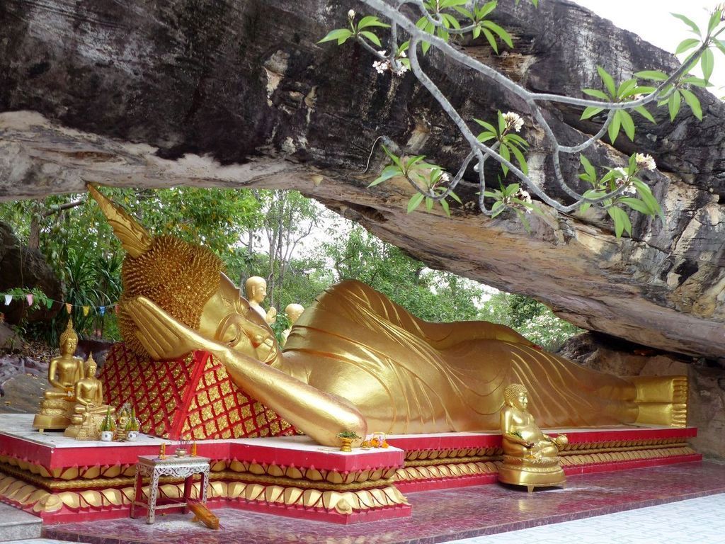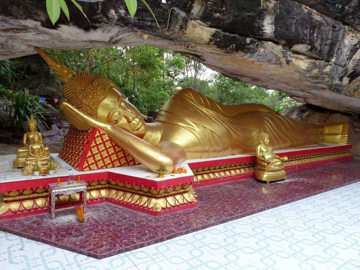 est principalement connu pour une statue de bouddha couché, placée sous une arche de pierre.