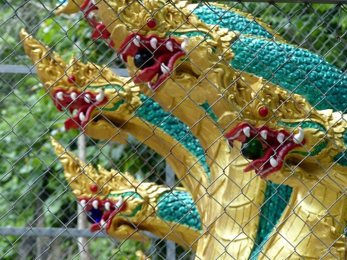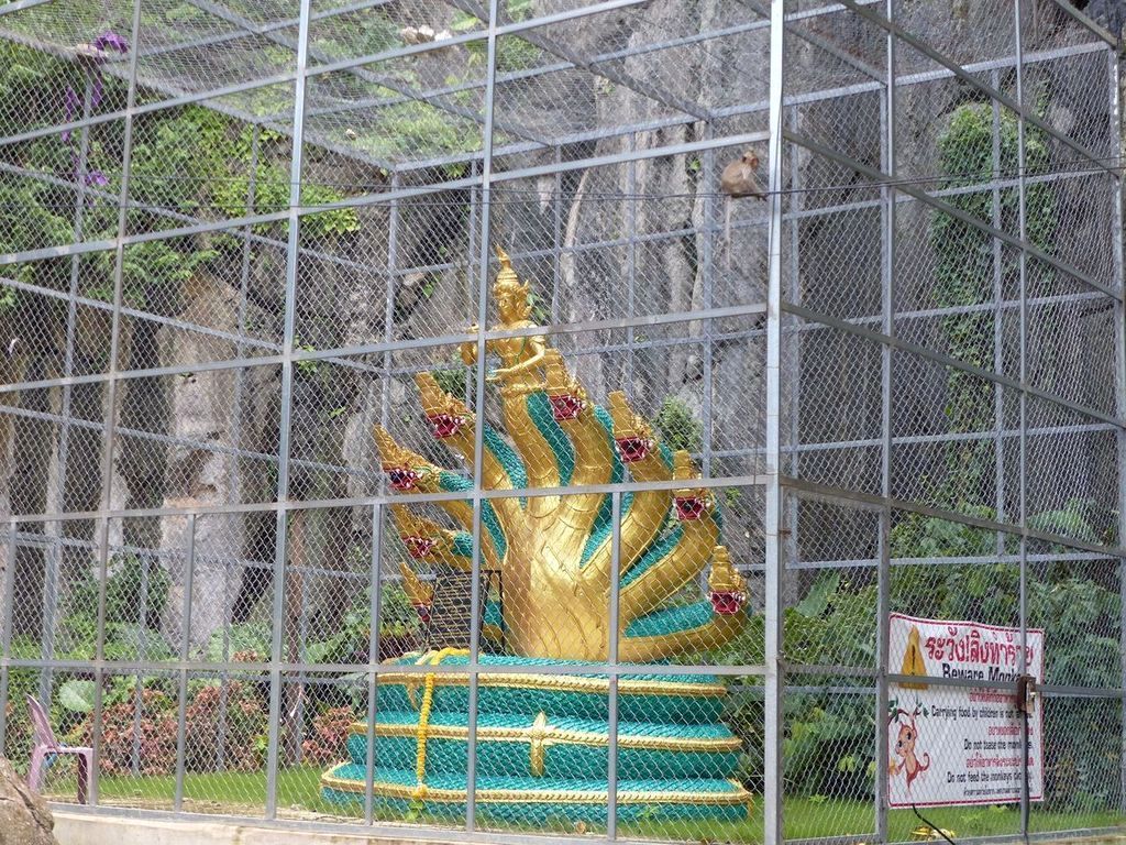 Du coup, ici, cette statue de nagas a du être littéralement "mise en cage" pour éviter les dégradations... car même si ceux-ci ne sont pas particulièrement agressifs, ce sont bien les singes qui sont maîtres des lieux...
