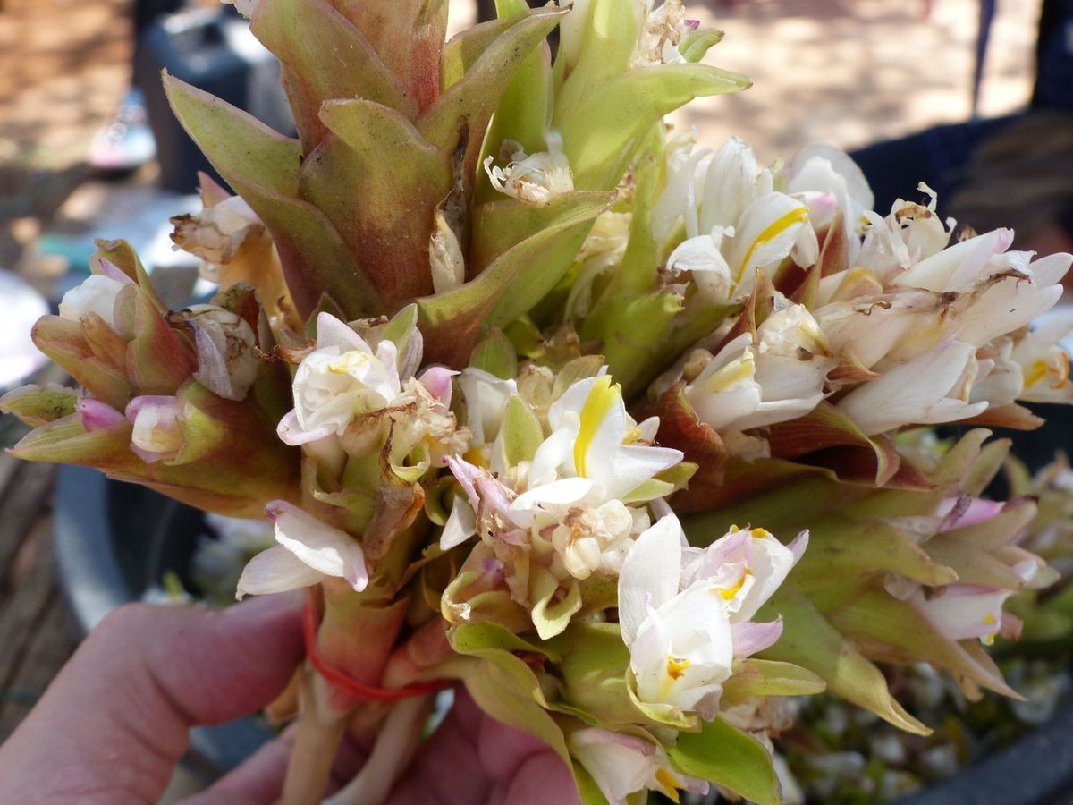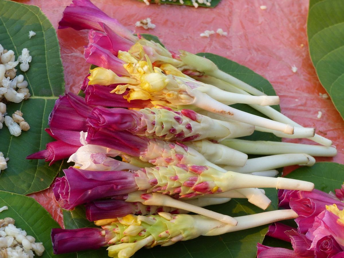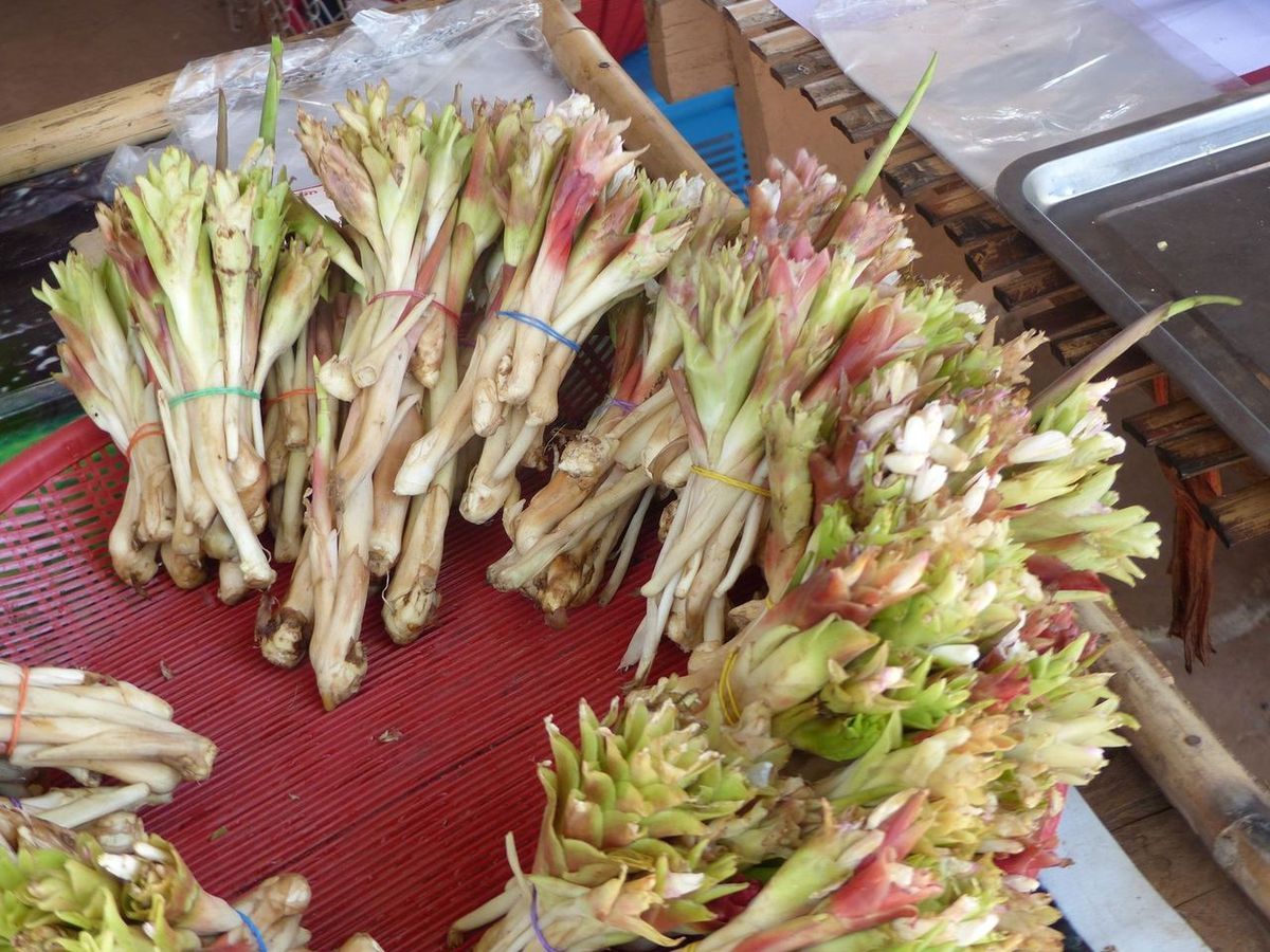 En voici une variété différente que l'on trouve couramment sur les marchés de Thaïlande. Elles sont de la même famille (curcuma) mais celles-ci sont comestibles.
