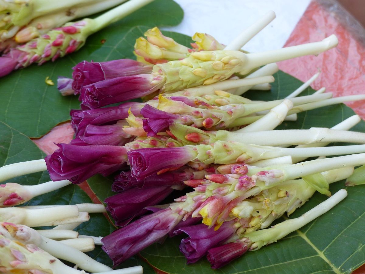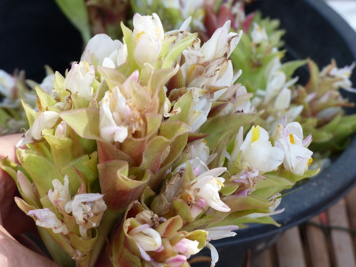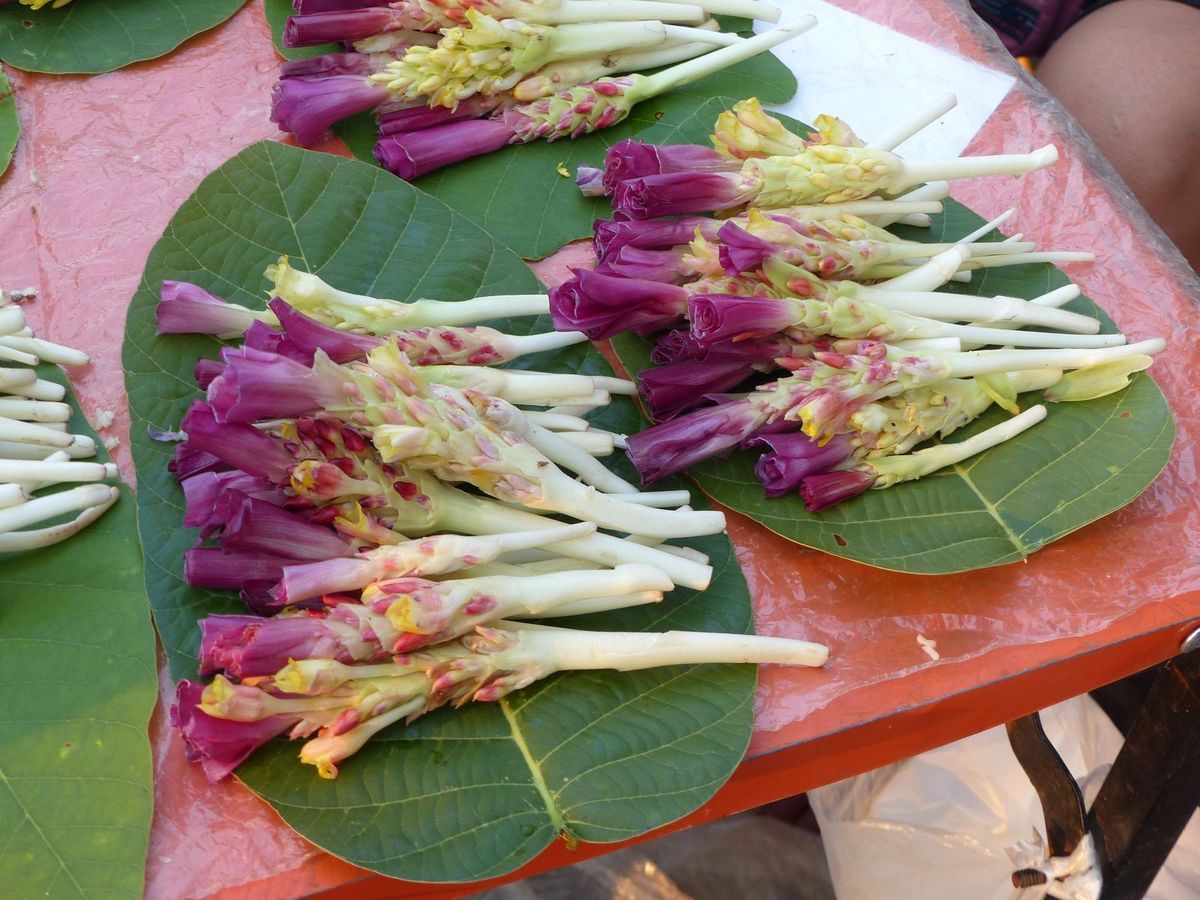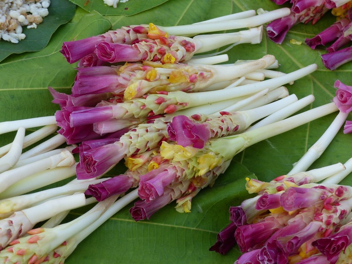 En voici une variété différente que l'on trouve couramment sur les marchés de Thaïlande. Elles sont de la même famille (curcuma) mais celles-ci sont comestibles.