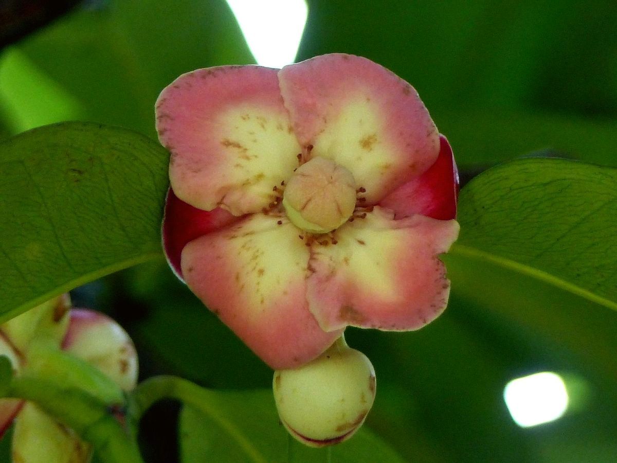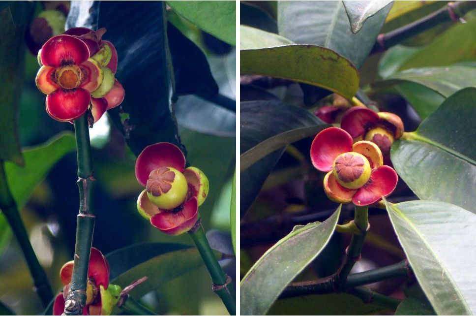 Ce sont les fleurs d'un mangoustanier, l'arbre fruitier qui donne les