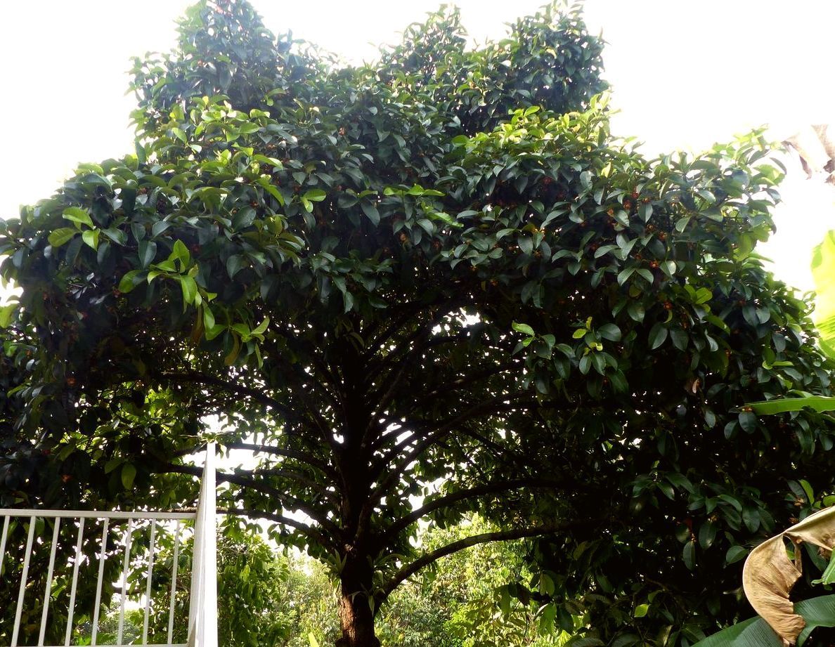 Cet arbre, garcinia mangostana de son nom savant, originaire d'Asie du sud-est, peut atteindre 25 mètres de haut.