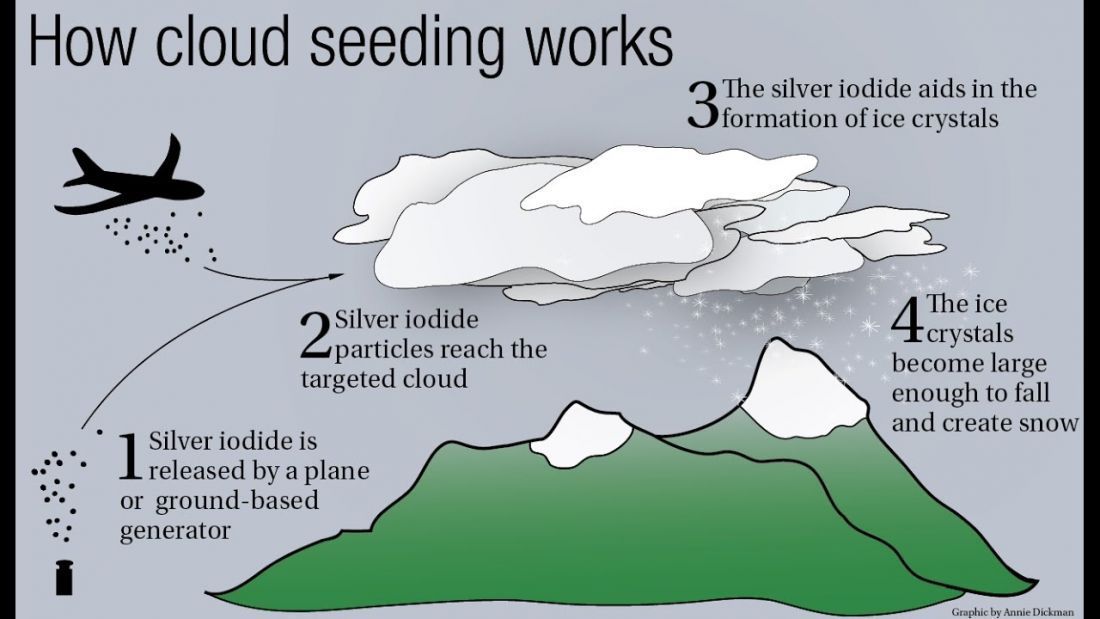 Le principe consiste à pulvériser des produits chimiques dans les nuages afin d’augmenter l’humidité et rendre les conditions propices au déclenchement de la pluie.