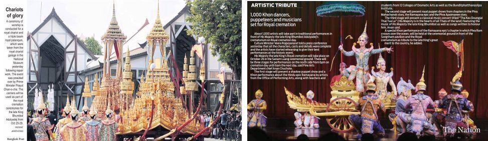 Ensuite, l'urne royale sera amenée du Wat Pho sur la place Sanam Luang où s'érige le monument du crématorium (voir http://lopezthai.over-blog.com/2017/09/deuil-national-derniers-preparatifs-pour-le-crematorium-monumental.html)