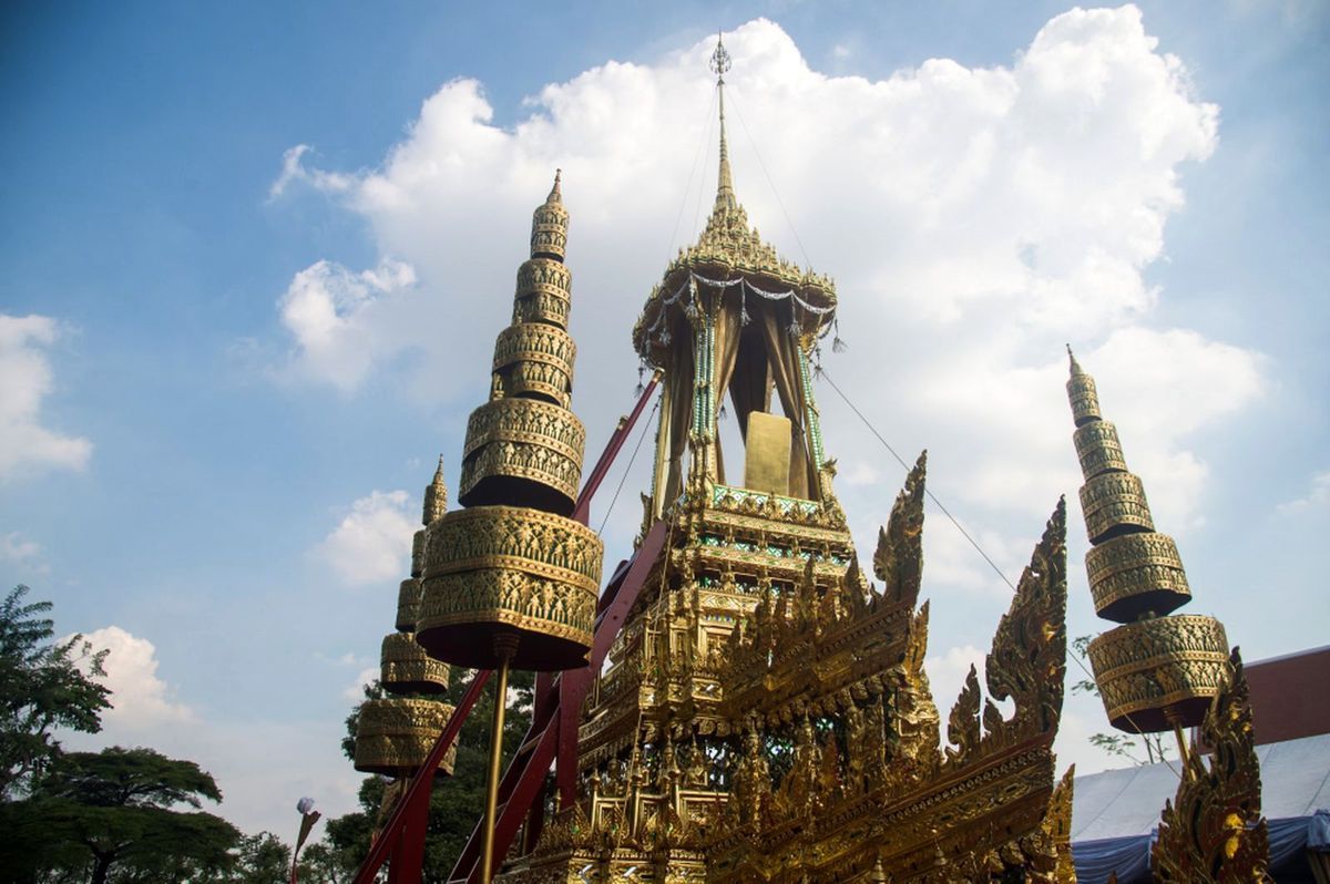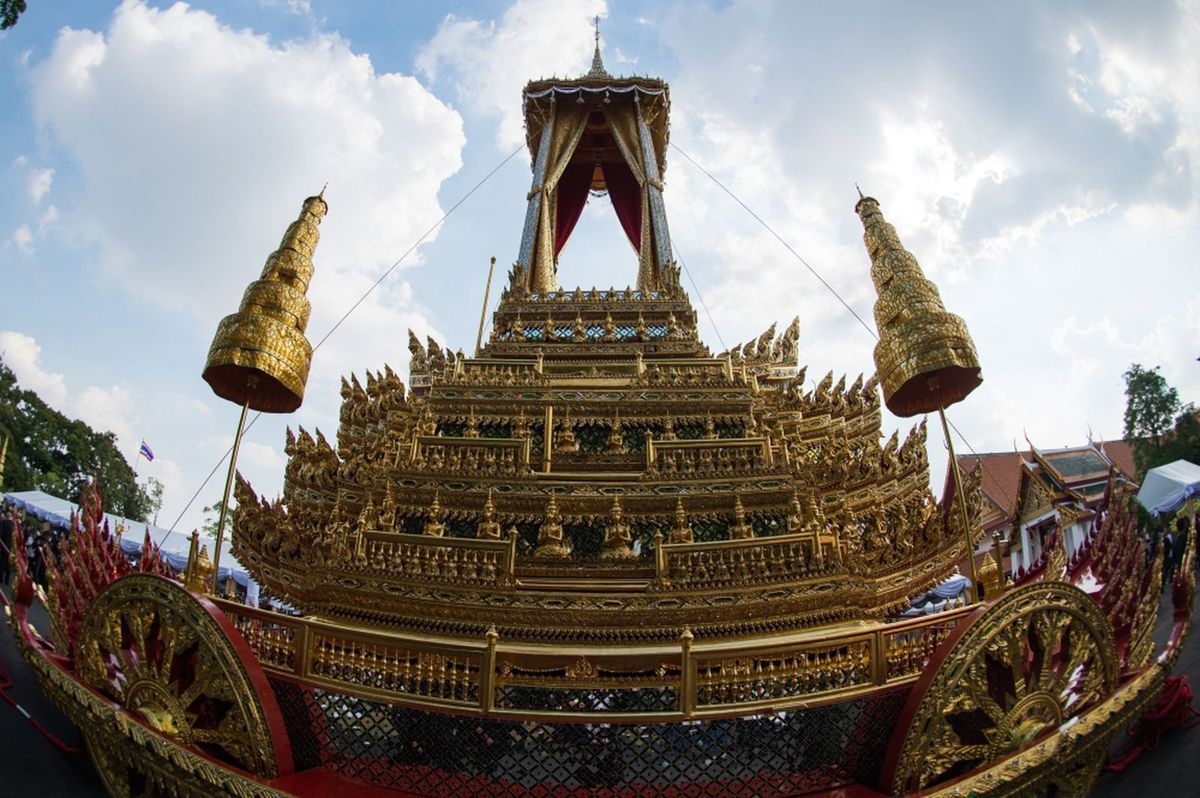 A propos du coffre doré contenant le corps du roi défunt, on parle ici d'urne funéraire et non de cercueil. Outre le fait qu'il sera incinéré selon le rite bouddhiste, une différence fondamentale avec les habitudes occidentales est que, selon la tradition, le corps doit être maintenu en position assise (en faisant passer une tige par l'anus...). Mais le roi Rama IX n'a pas eu à subir cette méthode cruelle, son corps est en fait dans un catafalque, en dessous de l'urne.