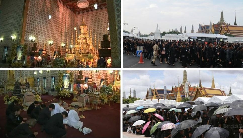Aujourd'hui devait être le dernier jour où l'urne royale est exposée dans le Maha Prasart Throne Hall au Grand Palais. Devant l'affluence encore plus forte en ces derniers jours, la date a été repoussée au 5 octobre et le palais restera ouvert jour et nuit jusqu'à cette date ! (l'attente dure en moyenne 6 heures pour entrer dans la salle où l'urne est exposée).