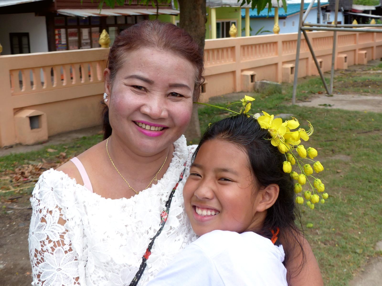 Lorsque nous rendons visite à la famille de Noy en Isaan, nous sommes souvent conviés à des cérémonies au(x) temple(s) aussi bien lors de fêtes bouddhistes formelles que parfois simplement à l'occasion de rassemblement familiaux.