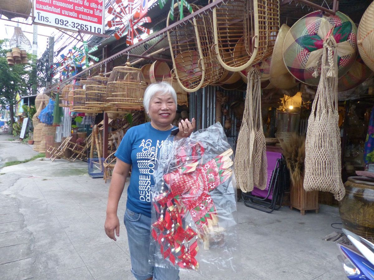 En fait, à Rong Po (à seulement 5 km de chez nous), il y a un petit magasin étonnant (dont je vous reparlerai) qui tient un peu du capharnaüm, qui vend principalement des objets artisanaux en bois ou rotin faits à la main.
