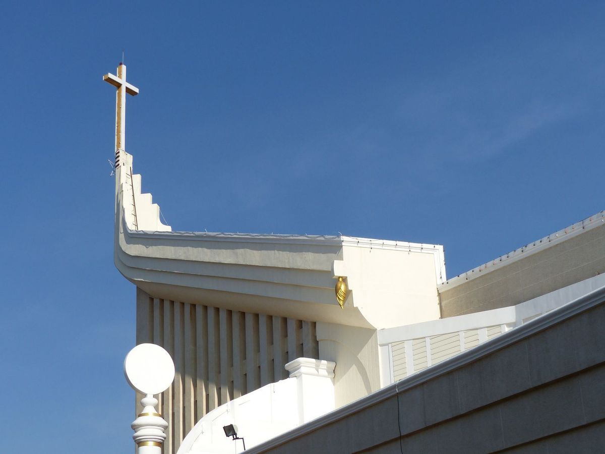 C'est une cathédrale monumentale (elle peut accueillir plus de 1000 personnes), d'architecture moderne dont la forme extérieure est censée représenter le bateau de l'arche de Noé.