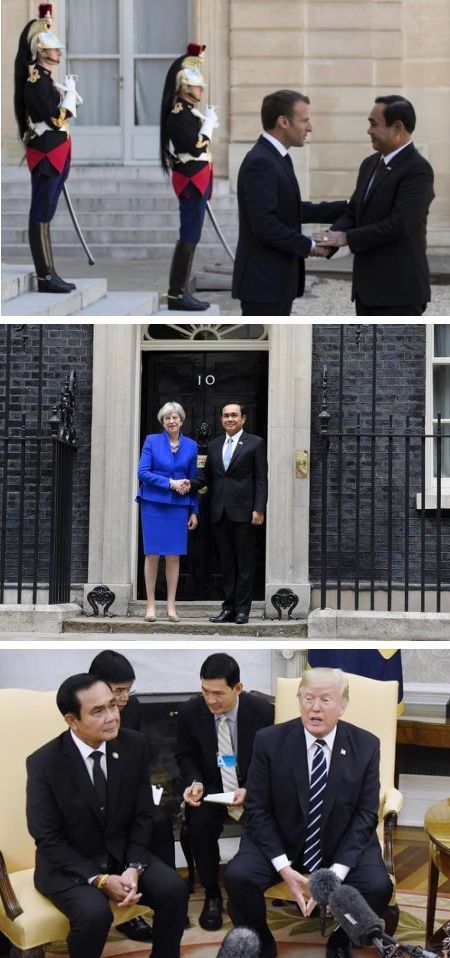 Il avait également rendu visite à Theresa May à Londres trois jours auparavant. Après la visite du Ministre des Affaires Etrangères britannique, Boris Johnson, à Bangkok, ce voyage marque la fin définitive de l’ostracisme diplomatique imposé par les occidentaux au gouvernement thaïlandais issu du coup d’état de mai 2014.