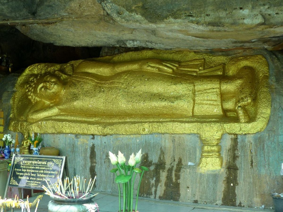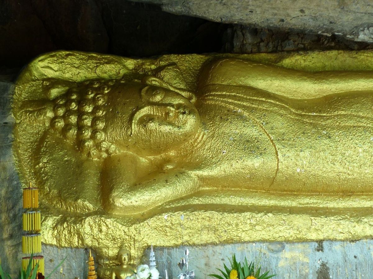 se trouvent deux statues de bouddha couché, sculptées dans la roche, et vénérées par les habitants de la région.